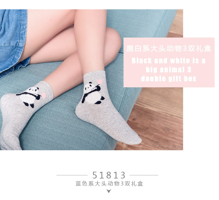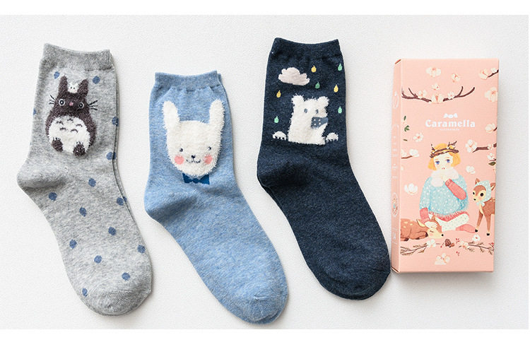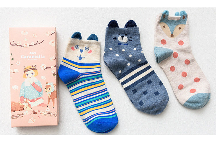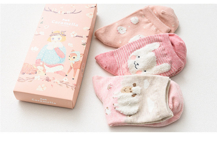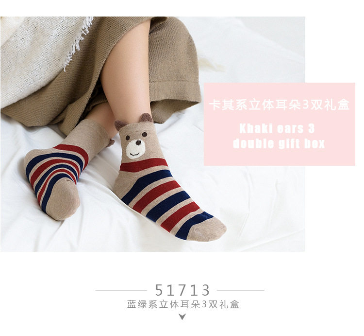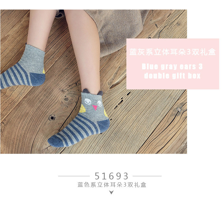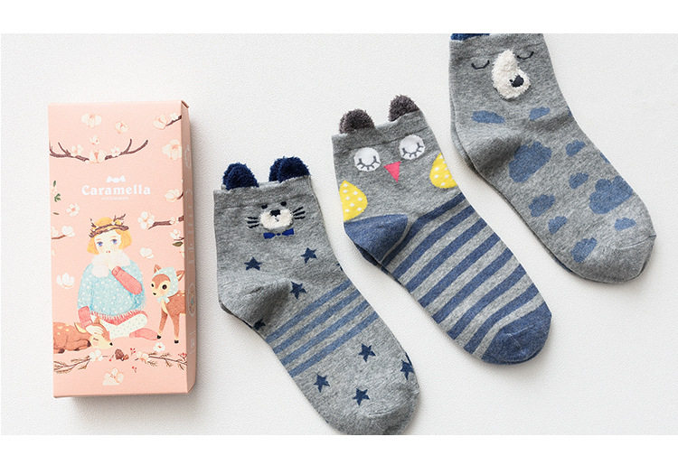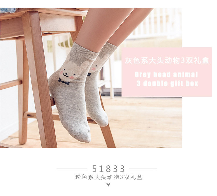 [พร้อมส่ง]  [Cm-012-10] ถุงเท้ากันหนาวสีเทาลายแพนกวิน,กระต่าย,หมีหูน่ารัก 3คู่/กล่อง