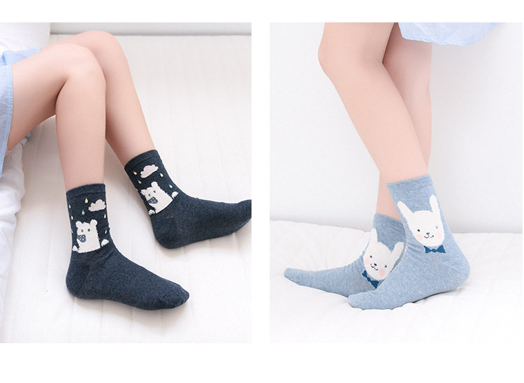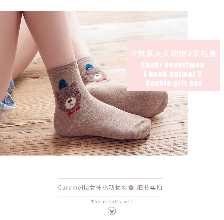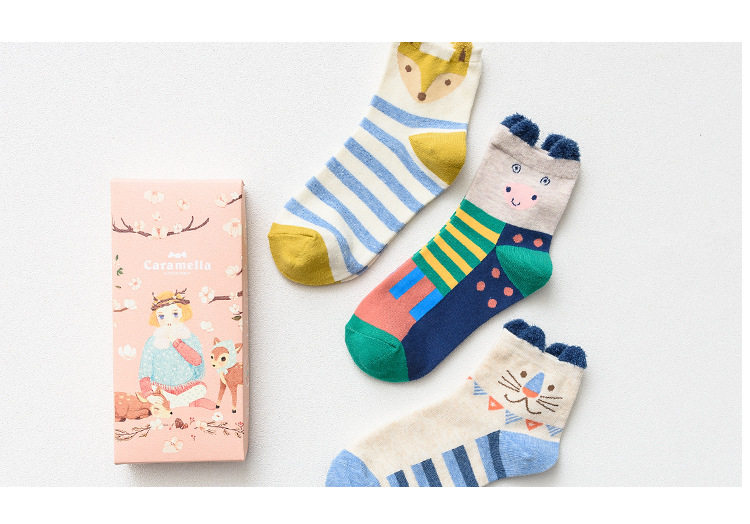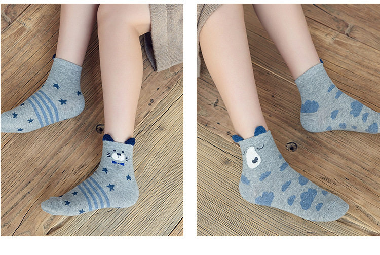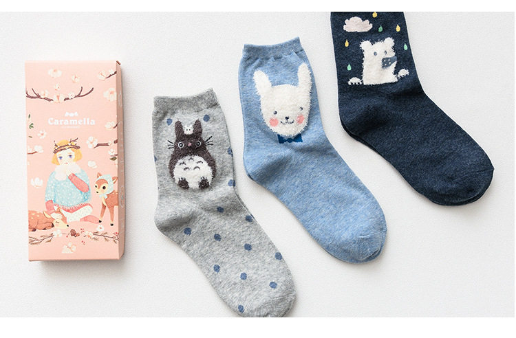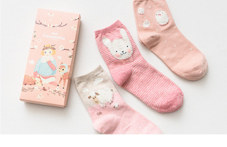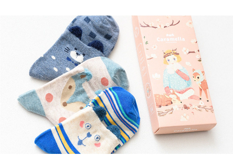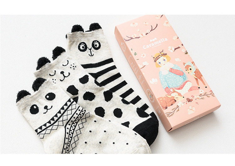 [พร้อมส่ง]  [Cm-012-10] ถุงเท้ากันหนาวสีเทาลายแพนกวิน,กระต่าย,หมีหูน่ารัก 3คู่/กล่อง