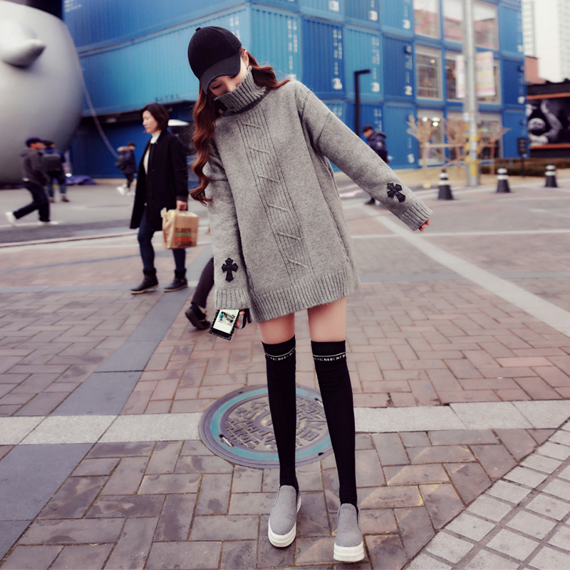 [พร้อมส่ง] [Mn-032] เสื้อไหมพรมคอเต่าสีเทาตัวยาว ผ้าหนาใส่กันหนาวดีมาก