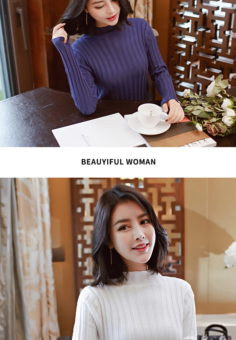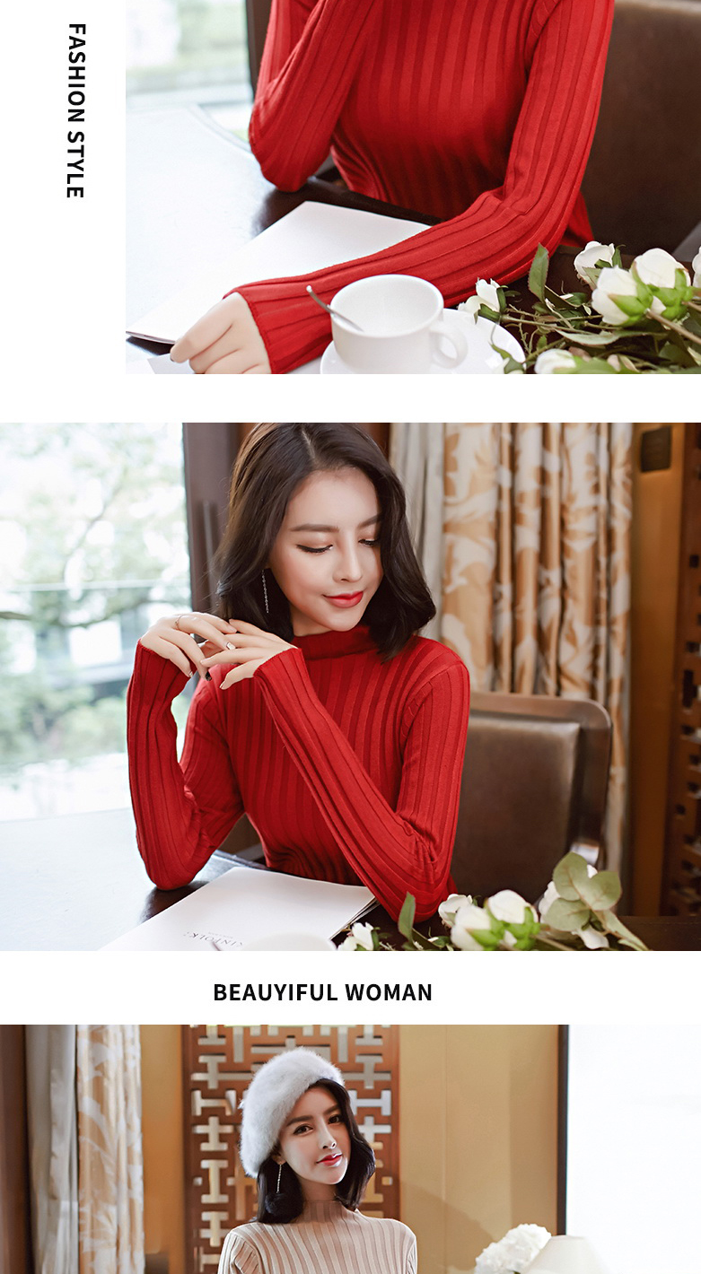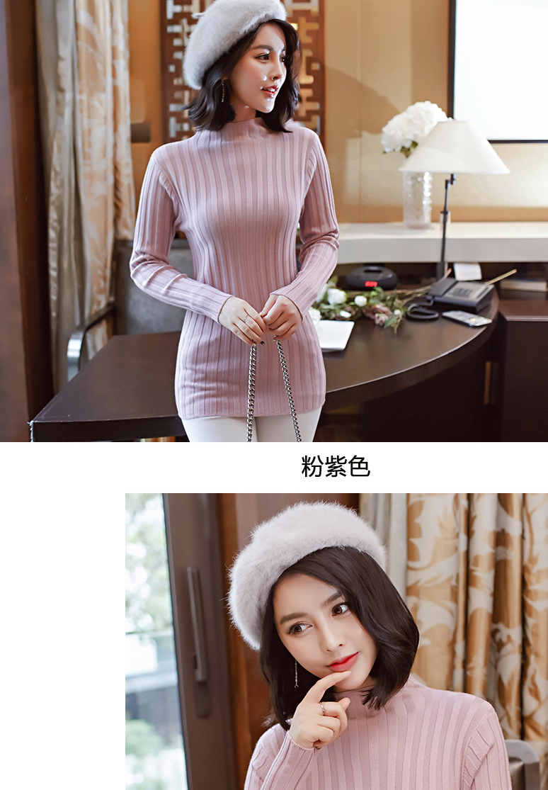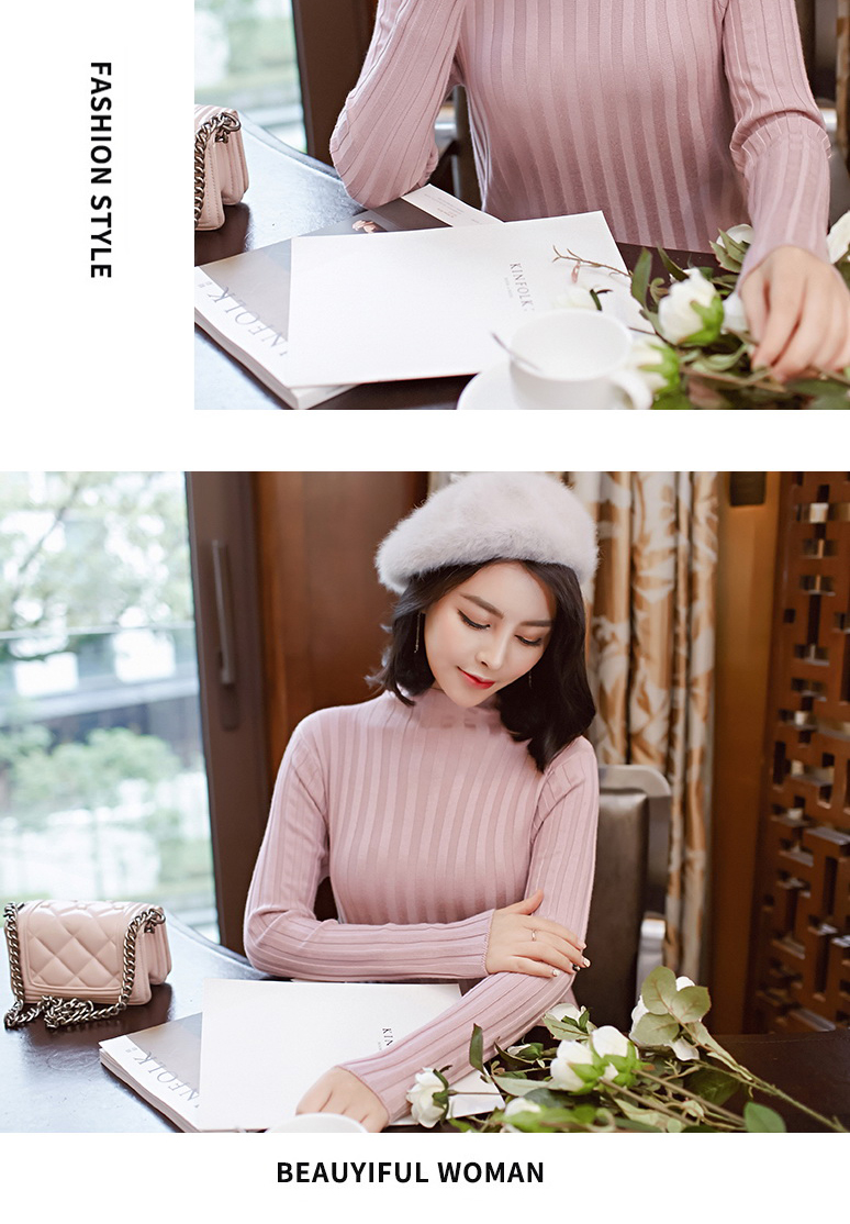 [พร้อมส่ง F] [Xu-010-5] เสื้อไหมพรมคอตัดสีชมพู ผ้ายืดลายเส้น แขนยาว ผ้าดีมาก
