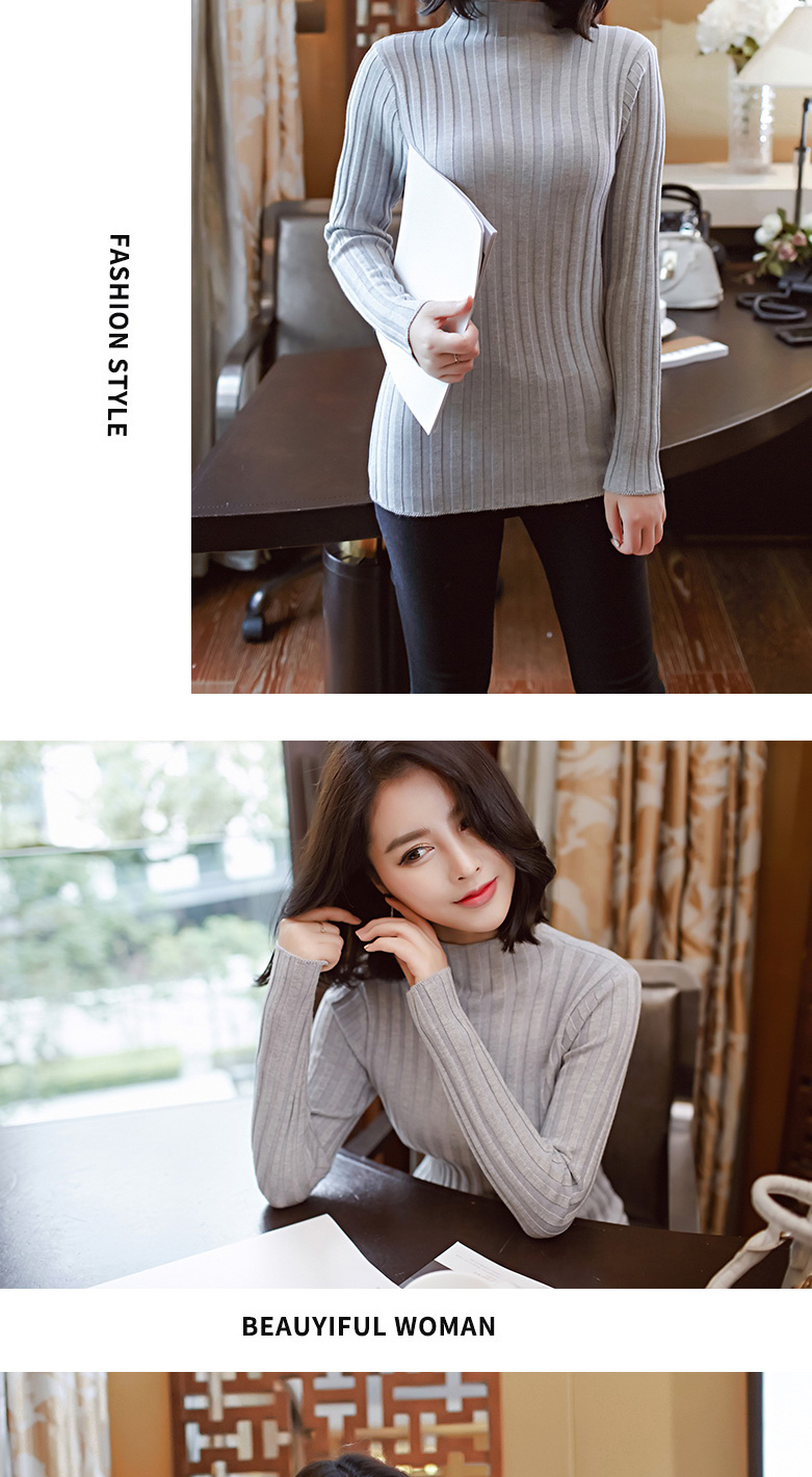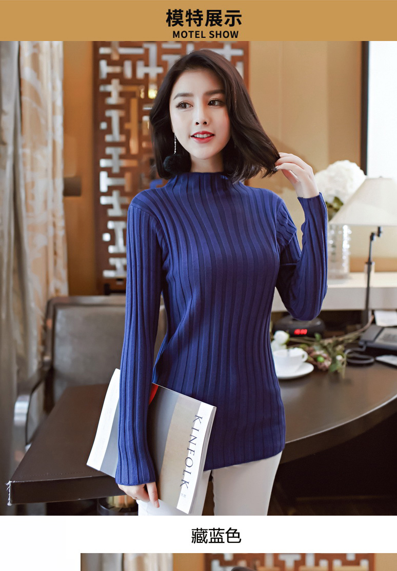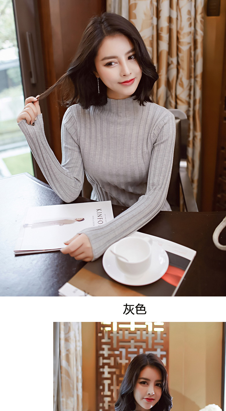 [พร้อมส่ง F] [Xu-010-5] เสื้อไหมพรมคอตัดสีชมพู ผ้ายืดลายเส้น แขนยาว ผ้าดีมาก