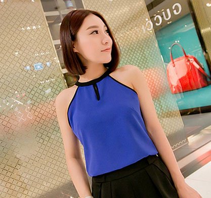 [[พร้อมส่ง]] [Yz-064] Yinz++เสื้อ++เสื้อแขนเว้าสีน้ำเงินสายดำ