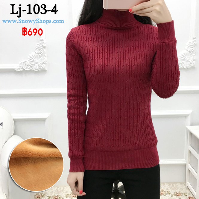 [พร้อมส่ง S,M,L,XL,2XL] [LJ-103-4] เสื้อไหมพรมลองจอนแบบคอเต่าสีแดง ด้านในซับขนวูลกันหนาว แขนยาว ใส่ติดลบได้ค่ะ