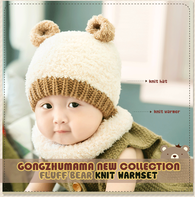 [PreOrder] [Kh-002-4] หมวกไหมพรมเด็กสีครีมหูหมีน่ารัก พร้อมปอกคอไหมพรม (เหมาะสำหรับเด็ก แรกเกิด-3 ขวบ)