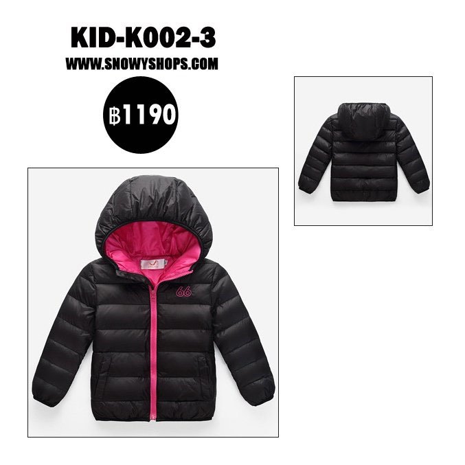 [พร้อมส่ง] [KID-K002-3] เสื้อโค้ทขนเป็ดเด็กสีดำ-ชมพู มีหมวกฮู้ด เป็นโค้ทสั้นซับขนใส่กันหนาว กันฝน ลุยหิมะได้ค่ะ