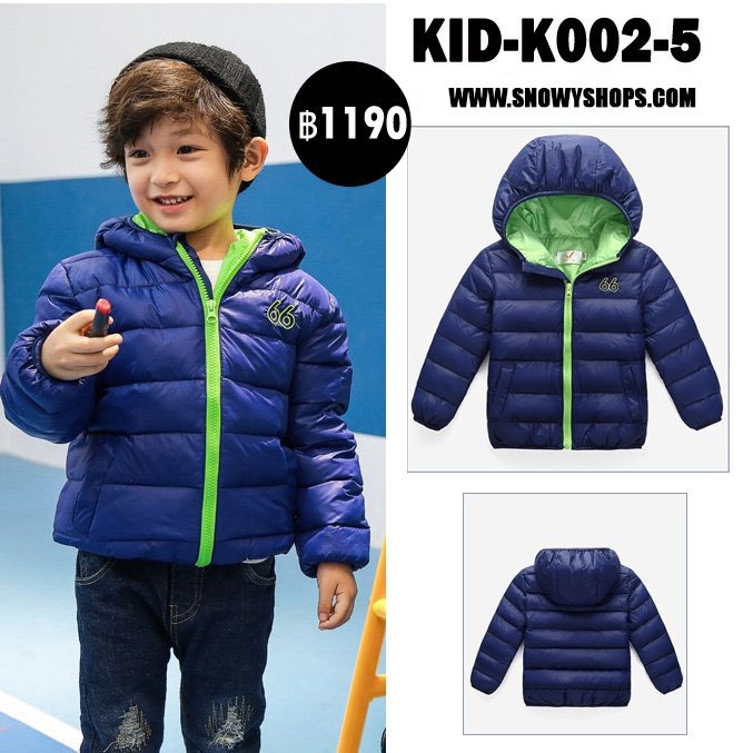 [พร้อมส่ง] [KID-K002-5] เสื้อโค้ทขนเป็ดเด็กสีน้ำเงิน มีหมวกฮู้ด เป็นโค้ทสั้นซับขนใส่กันหนาว กันฝน ลุยหิมะได้ค่ะ